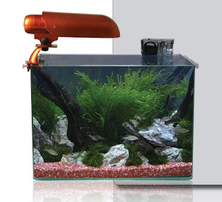 My first wish was to use as little 'medicine' as possible. I read some articles that reminded me of biology class in secondary school: photosynthesis...the magic word. It appears that, as many of you will remember, plants produce O2 (oxigen) in lighted conditions and use CO2 to both produce it and in order to grow. In dark condition the proces reverses and CO2 gets produced through O2 usage. Algae on the other hand appear to use O2 (produced by plants) in daytime conditions in order to grow.